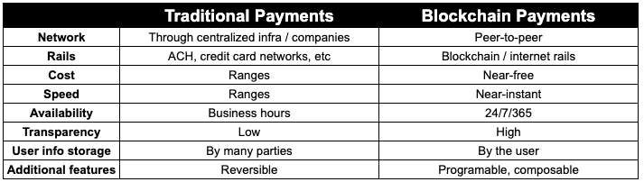 Blockchain technology, by contrast, innovates on the back-end to reimagine the rails themselves. Already, blockchain-based payments can occur 24/7/365 at near-zero costs and near-instant settlement. Businesses can accept digital asset-based payments with only a public key and without the need for specialized hardware or payments to issuers, merchant acquirers, and card networks. And the blockchain itself can serve as a real-time, verifiable, immutable public ledger resulting from open code executed as written to materially increase transparency and reduce disputes. In the future, financial inclusion will increase with permissionless protocols requiring only an internet-connected device to participate, user experiences will improve with key pairs serving as identification, account numbers, and passwords, and security can strengthen with private information self-custodied by the user rather than spread across innumerable institutions, companies, and websites.