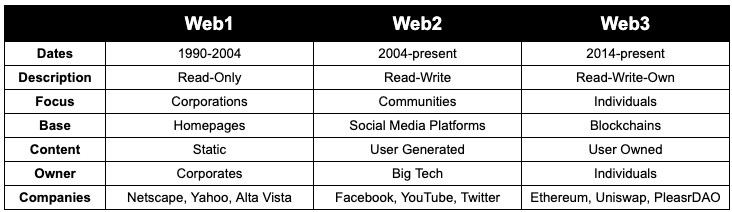 Originally designed for automated information sharing between academics, the World Wide Web (web) was invented in 1989 at CERN by British computer scientist Tim Berners-Lee. The web serves as an information system enabling documents and other web resources to be accessed over the internet (yes, the internet and the web are different). And as Gen Xers can astutely attest, the web has evolved considerably since its early days. With blockchain and cryptocurrencies at the heart of its next iteration, the generally accepted phases of the web are: