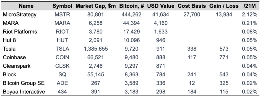 Top Corporate Bitcoin Holders