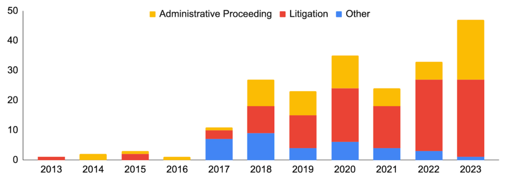 SEC Cryptocurrency Activity by Type, 2013-2023