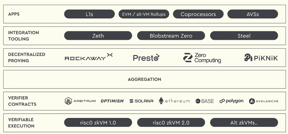 ZKP’s enable programmable privacy and verifiable computation in applications ranging from blockchains, finance, to identity, compliance, governance, healthcare, gaming and many more. And while zero knowledge proofs have quickly moved from the theoretical to the practical, improving on key areas like prover time, proof size, verification time, and the trusted setup, the use of the technology has been out of reach for many given the immense time and expertise required to write lengthy custom arithmetic circuits in domain specific languages. However, zero knowledge virtual machines (zkVMs) have now progressed to allow developers to simply program in Rust and for the zkVM to prove the execution of the code, enabling a new paradigm in verifiable computation (technically, Rust code is compiled to RISC-V ISA bytecode and the zkVM proves the execution of RISC-V given the program and program inputs). Moreover, zkVM solutions like Risc Zero and Succinct are building decentralized prover networks so developers can outsource proof generation for low pricing/latency and high liveness/censorship resistance guarantees. And while the usage of zkVMs was historically inhibited by speed and cost considerations, zkVMs have improved immensely here to where zkVMs are now becoming the preferred zero knowledge solution for many/most use cases. As one example, optimistic rollups can now convert to zero knowledge rollups using zkVM technology to benefit from faster withdrawals, lower trust assumptions, and greater interoperability, while zero knowledge rollups, currently in the form of zkEVMs that may be hundreds of thousands of lines of code that are difficult to audit or upgrade with Ethereum forks, can also utilize zkVMs to drastically enhance flexibility, auditability, and upgradability. Finally, we see some similarities to restaking in providing compute guarantees, though unlike restaking, zkVMs do so with cryptographic rather than economic guarantees and further benefit from requiring just one party rather than all operators to perform the computation.
