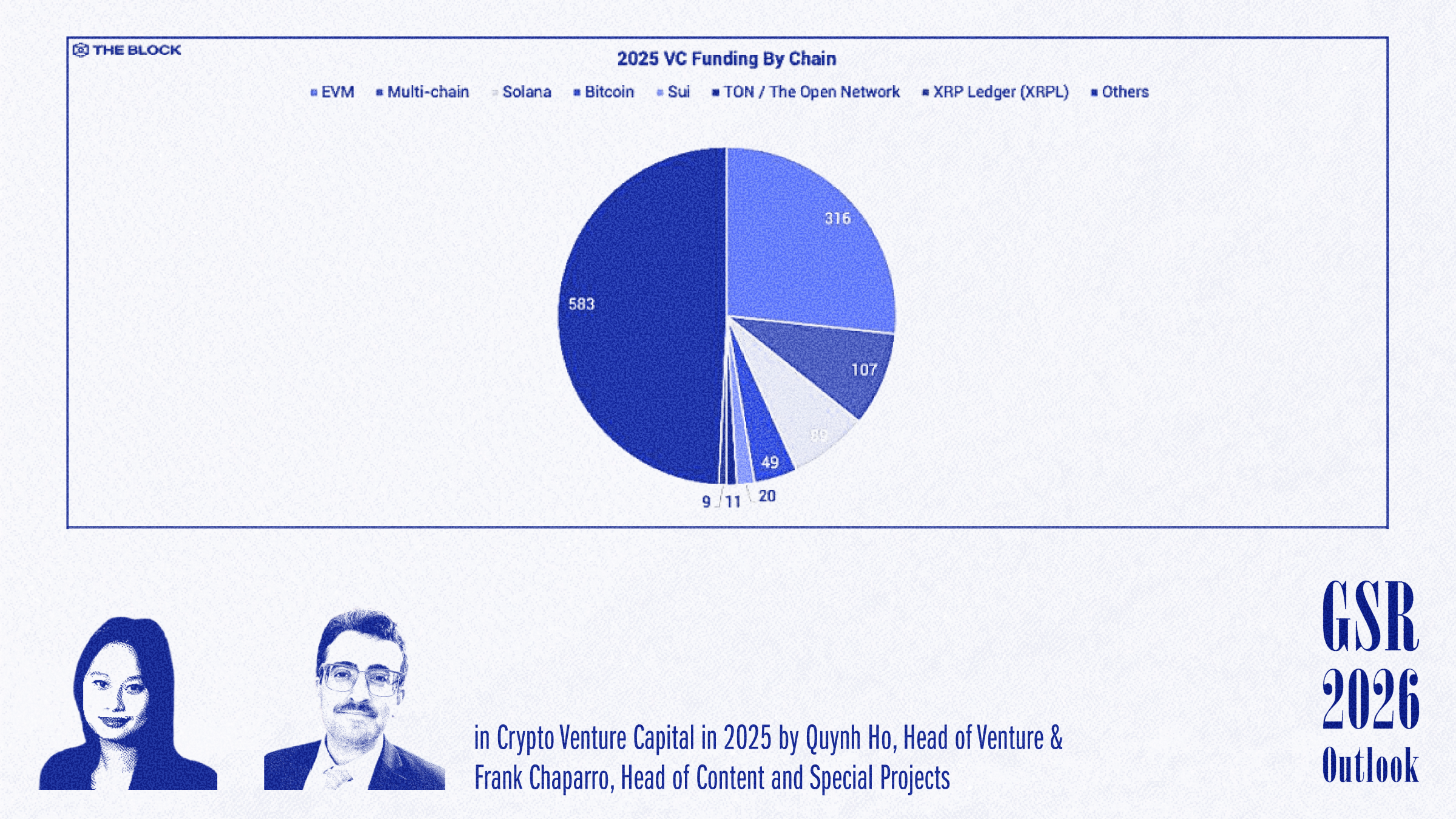 According to The Block, traditional crypto venture deal count fell ~60% year-over-year, driving average transaction sizes significantly higher—from approximately $4.7 million in 2024 to $16 million in 2025—as capital concentrated in fewer, larger raises led by established teams and later-stage companies. Within this environment, GSR remained active across a broad set of venture categories, with particular emphasis on DeFi, infrastructure, and core financial services that underpin scalable onchain adoption. As investors increasingly prioritized regulatory clarity, durable revenue models, and operational maturity over speculative early-stage experimentation, GSR found opportunities where long-term fundamentals aligned with the evolving market—resulting in a diversified, conviction-driven venture portfolio reflective of the industry’s future.