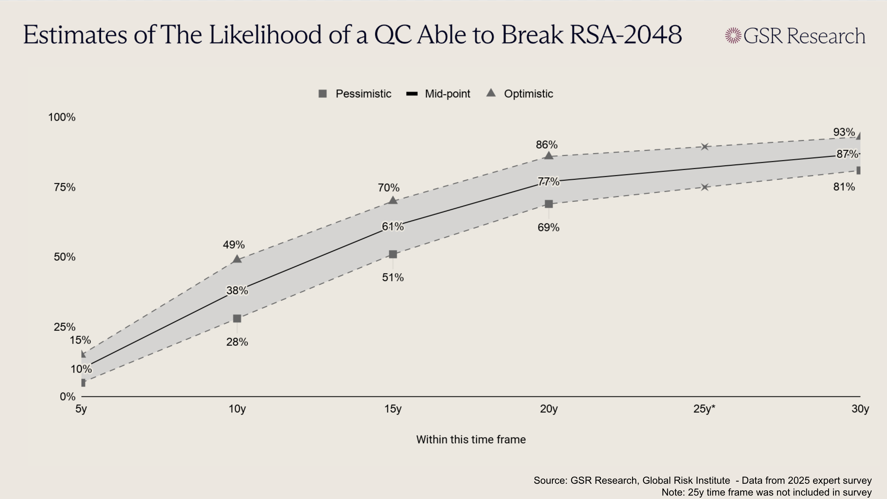 It’s worth pointing out that there is still a substantial gap between theoretical resource estimates and actual hardware capabilities. No quantum computer has reliably factored anything beyond trivially small numbers using Shor's algorithm. The Global Risk Institute's latest survey of 26 quantum computing experts places the average estimated likelihood of a cryptographically relevant quantum computer at 28% to 49% within 10 years and 51% to 70% within 15 years. However, the 2025 survey was conducted before last week's research was published, and already marked a notable acceleration from prior years. Even conservatively, these are probabilities the crypto industry cannot ignore.