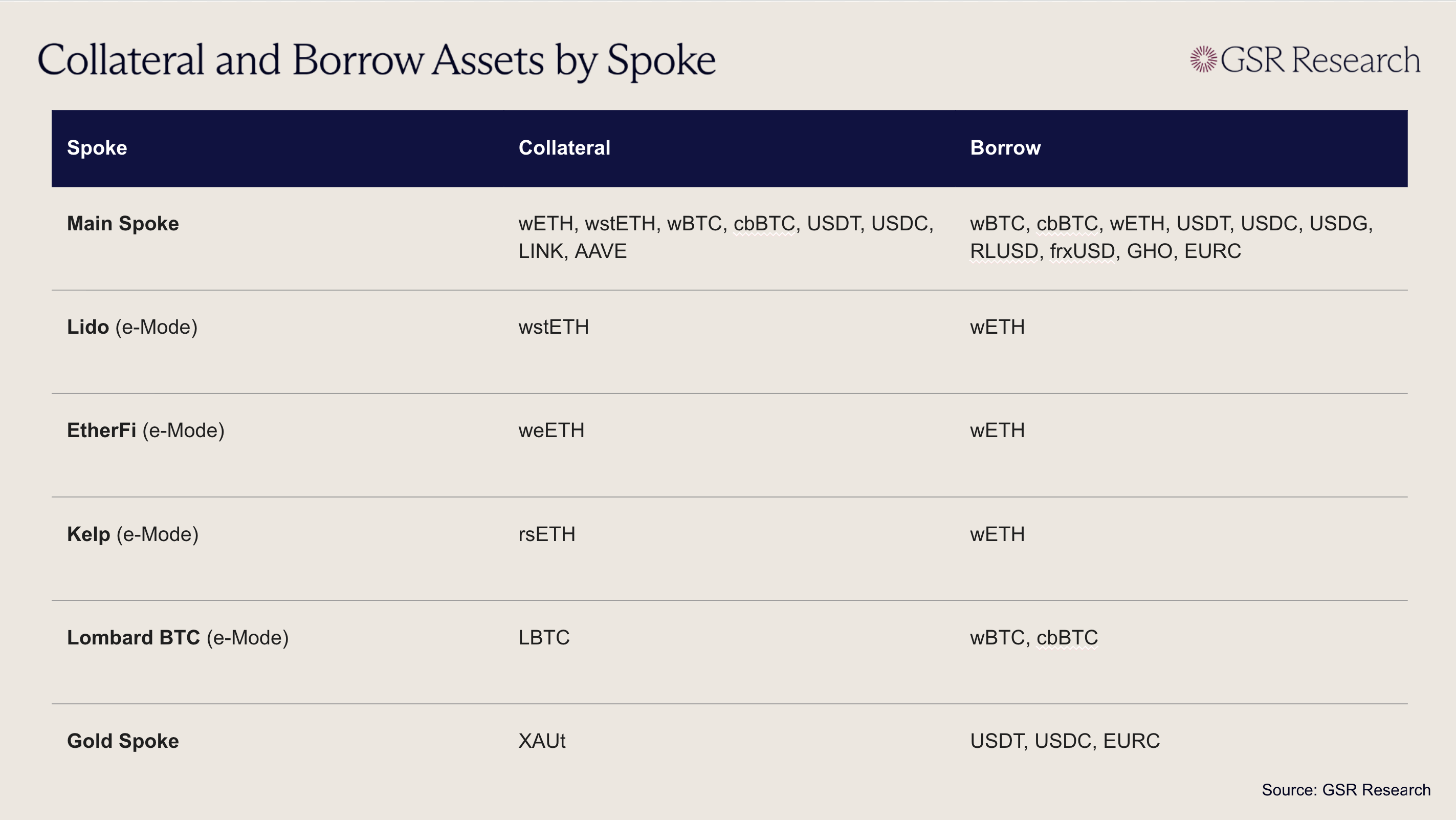 The initial Spoke mix illustrates what Aave aims to accomplish with V4. Rather than launching a single, generalized Ethereum market, V4 segments use cases into tightly scoped venues. That includes narrow, protocol-specific LST and LRT leverage environments like Lido, EtherFi, Kelp, and Lombard BTC, alongside more unusual categories such as gold and forex-style markets. The modularity is purposeful, as it expands the range of assets and strategies Aave can support without forcing all of them into the same assumptions or fragmenting liquidity across a growing list of siloed pools.