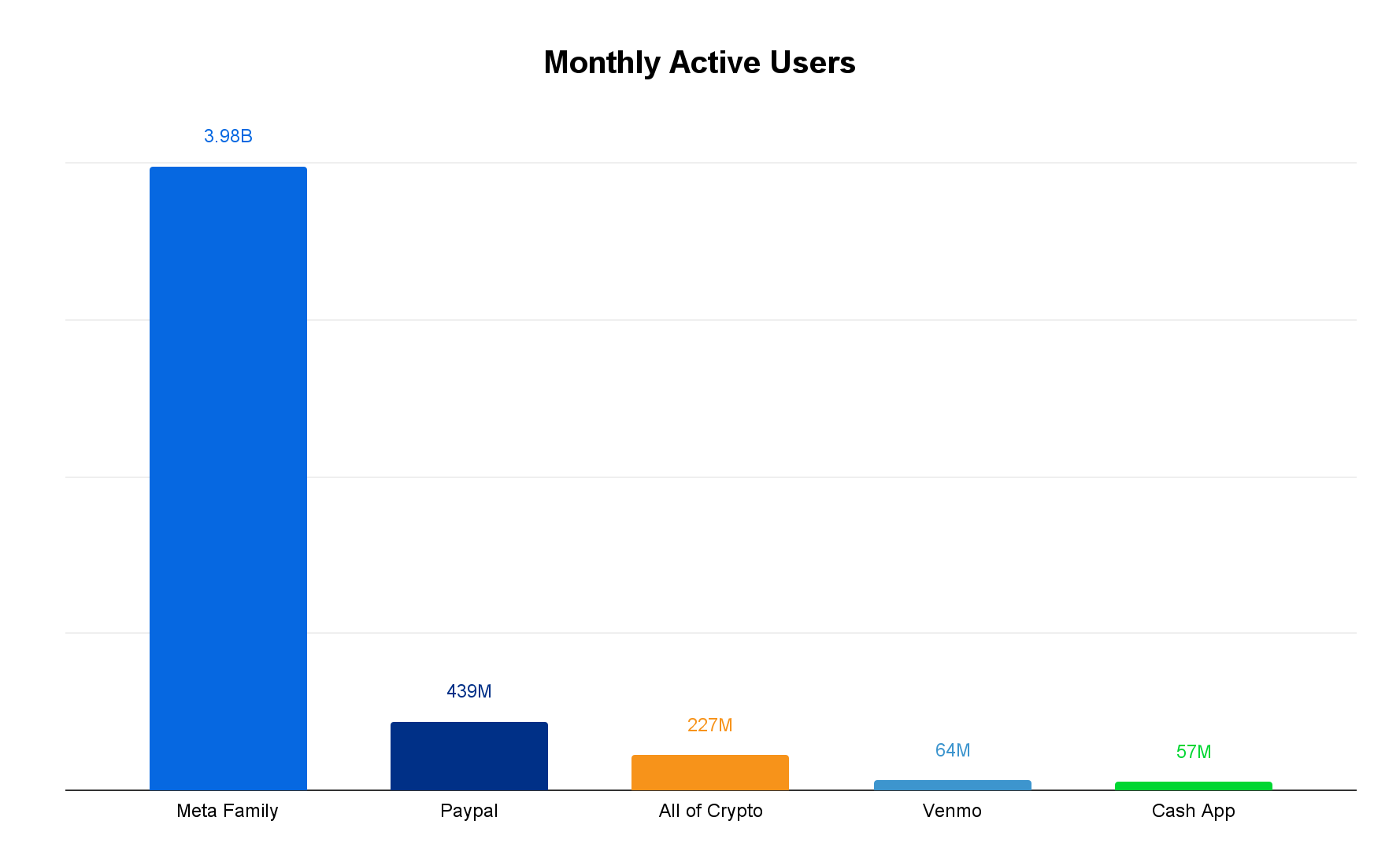 This shift in strategy may be more significant than it appears. In stablecoin payments, distribution is the moat. The rails and the assets are rapidly commoditizing, there will be many stablecoin issuers, and orchestration infrastructure is becoming standardized. The scarce resource is the direct relationship with billions of end users, and no company on earth has more of that than Meta. To put the potential impact in perspective: PayPal, one of the current leaders in digital payments in the West, has 439 million active users. Total crypto active addresses reached 227 million in December 2025, according to Token Terminal (though these include bots and secondary wallets, real active users are estimated to be a fraction of this). Even converting a small portion of Meta's user base would dwarf both figures. Meta has demonstrated this kind of transformative distribution power before, it turned WhatsApp into the global default for instant messaging and Instagram into the backbone of creator commerce. If it can do the same for stablecoin payments, making them seamless, global, and invisible to the end user, the impact on adoption would be massive.