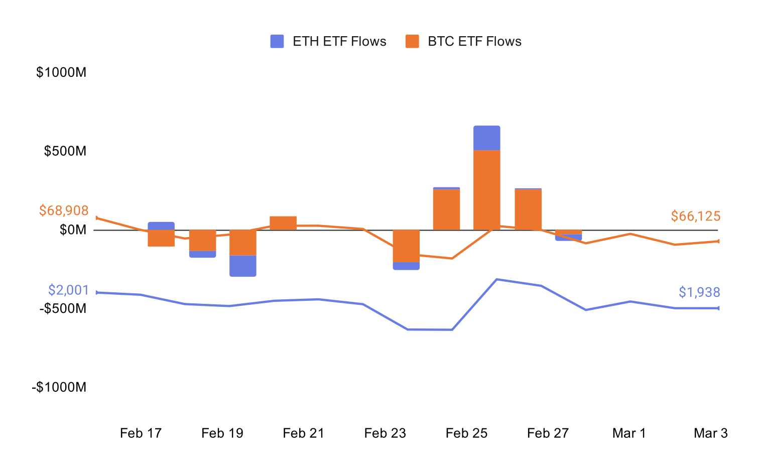 Source: Farside Investors, CoinGecko - Data as of Mar 1, 2026