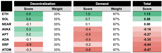 As shown below, the three blockchains with above average demand scores are Ethereum, Solana, and NEAR.