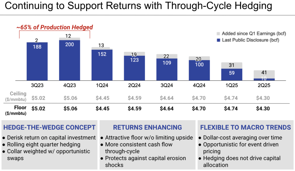 Source: Chesapeake investor relations website, GSR. Note: Hedge position as of 7/26/23. Slide reproduced to increase font size for readability. The original is from the 2Q23 earnings presentation and can be found here.