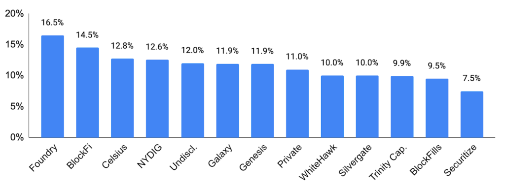 Source: The Block Research, GSR. Note: Data is from 2021, when bitcoin miners were substantially more profitable and interest rates in general were substantially lower.