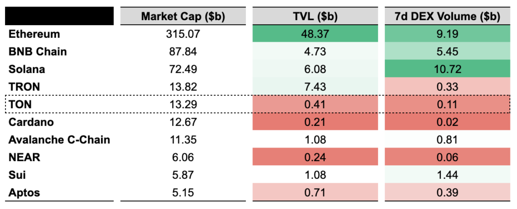TON Currently Lags Other Major L1s in DeFi TVL and Trading Volumes